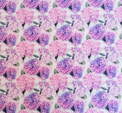 Teplákovina potisk kytice hortenzií na smetanové