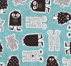 Teplákovina potisk příšerky na světle modré