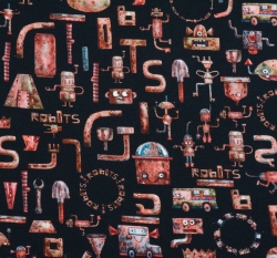 Úplet potisk roboti ze šrotu na černé, BIO