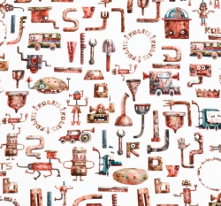 Úplet potisk roboti ze šrotu na bílé, BIO