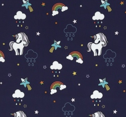 Softshell s fleecem potisk jednorožci v dešti na tmavě modré