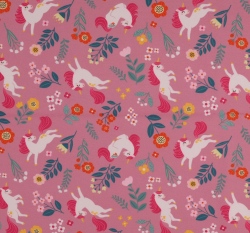 Softshell s fleecem potisk jednorožci mezi kvítky na růžové