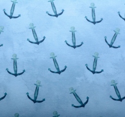 Teplákovina potisk modré kotvy na světle modré, BIO