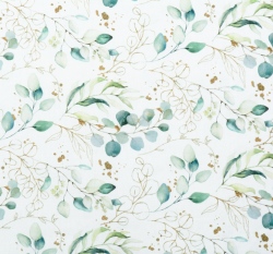Bavlněný popelín potisk větvičky eukalyptu na bílé