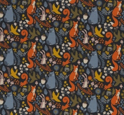 Teplákovina potisk lesní zvířátka na tmavě modré