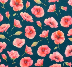 Pružný softshell potisk vlčí máky na modré, s fleecem