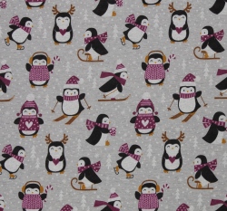 Warmkeeper potisk tučňáci v růžových svetrech na šedé