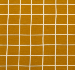 Teplákovina počesaná potisk hořčicová mřížka, BIO