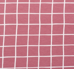 Teplákovina počesaná potisk růžová mřížka, BIO