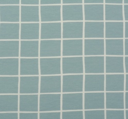 Teplákovina počesaná potisk světle modrá mřížka, BIO