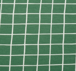Teplákovina počesaná potisk zelená mřížka, BIO