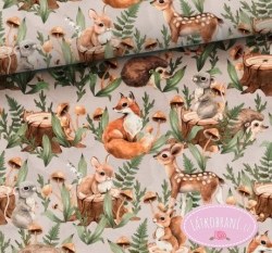 Bavlněné plátno mláďátka z lesa na béžové