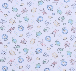 Bavlněný úplet modrá zvířátka z džungle na smetanové
