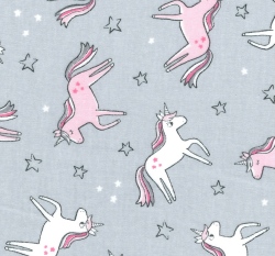 Bavlněný úplet jednorožci na šedé