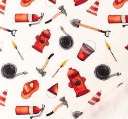 Teplákovina počesaná potisk hasičská výzbroj na bílé