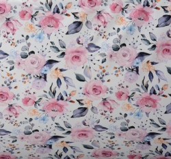 Teplákovina potisk rozkvetlé růže na bílé