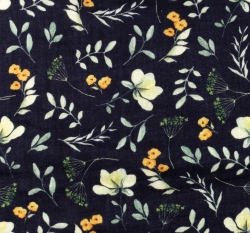Dvojitá gázovina / mušelín květy a listy na tmavě modré