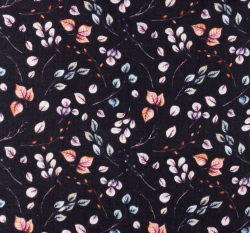 Dvojitá gázovina / mušelín pastelové lístečky na tmavě modré