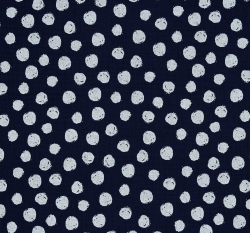 Dvojitá gázovina / mušelín nepravidelné puntíky na tmavě modré, BIO