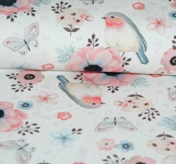 Teplákovina potisk ptáčci na bílé