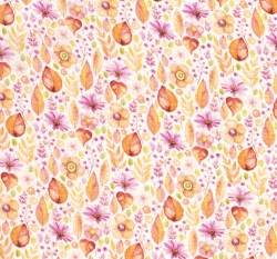 Dvojitá gázovina / mušelín květy mezi listy na bílé