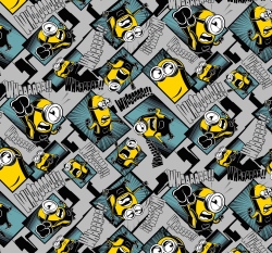 Teplákovina počesaná potisk mimoni na šedé