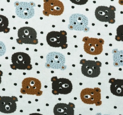 Úplet potisk hlavy medvídků s puntíky na krémové