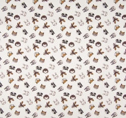 Bavlněný popelín potisk hlavičky lesních zvířátek na bílé
