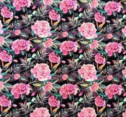 Teplákovina potisk pivoňky na tmavém podkladu
