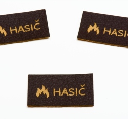 Štítek na oblečení "hasič", koženkový, imitace tmavé kůže