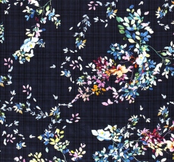 Bavlněná látka s příměsí viskózy jarní kvítí na navy modré