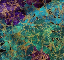 Teplákovina potisk ginkgo biloba v modro - fialové