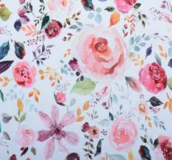 Úplet potisk malované květy na bílé, BIO