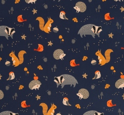 Softshell potisk lesní zvířátka na modré s fleecem
