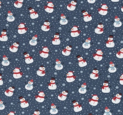 Teplákovina potisk sněhuláci mezi vločkami na modré, lehce počesaná