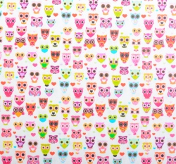 Bavlněné plátno barevné drobné sovičky na bílé