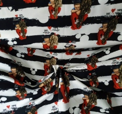 Teplákovina potisk maminka se synem na bílo - černých proužcích