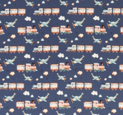Úplet potisk letadlo a lokomotiva na modré jeans