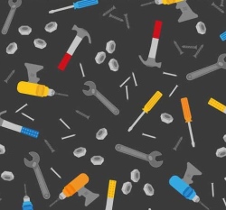 Teplákovina potisk nářadí na černém podkladu