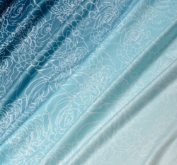 Funkční úplet "mléčné hedvábí" panel bordura květy, přechod bílo - modrý