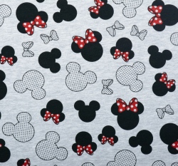 Úplet potisk hlava myšky s červenou mašlí na světle šedém melé
