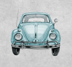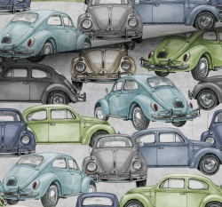 Teplákovina potisk retro auta (brouci) na šedé