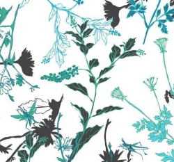 Úplet potisk mintové kytičky na bílém podkladu