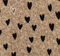 Teplákovina potisk srdíčka na hnědém taupovém podkladu jeans efekt