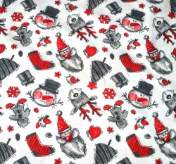 Teplákovina potisk zimní, vánoční sobi, sněhuláci, perníčky, stromečky na bílé