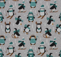 Warmkeeper potisk tučňáci v petrolejových svetrech na šedé