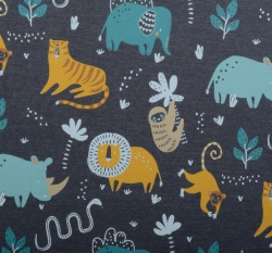 Úplet potisk divoká zvířata, tmavě šedý melanž