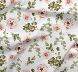 Teplákovina potisk rozkvétající růže mezi lístečky