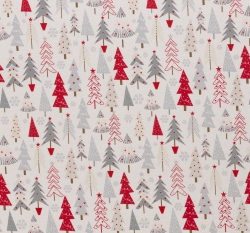 Úplet potisk vánoční stromečky na jemňoučkém šedém melíru