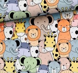 Teplákovina potisk barevná zvířátka ze zoo
